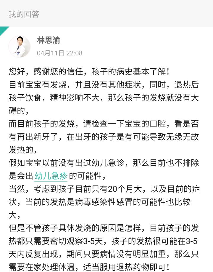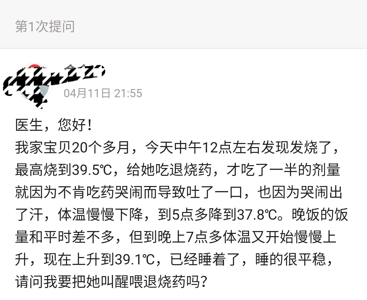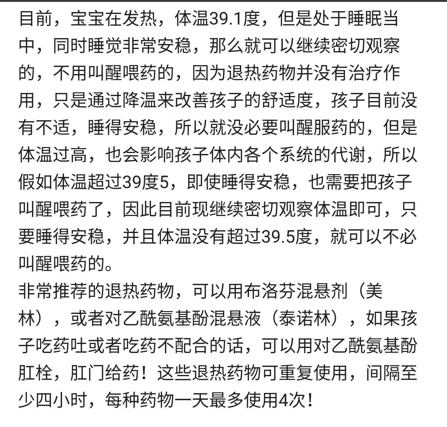 一例睡着的孩子发烧,是否叫醒用退热药物的问题,与大家分享一下