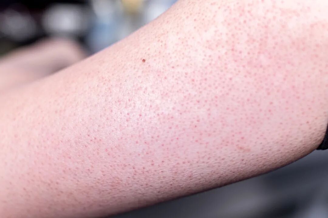 这个常见的皮肤问题,俗称就是“鸡皮肤”,而它的学名,则叫做“毛周角化症”或者“毛发角化病”。